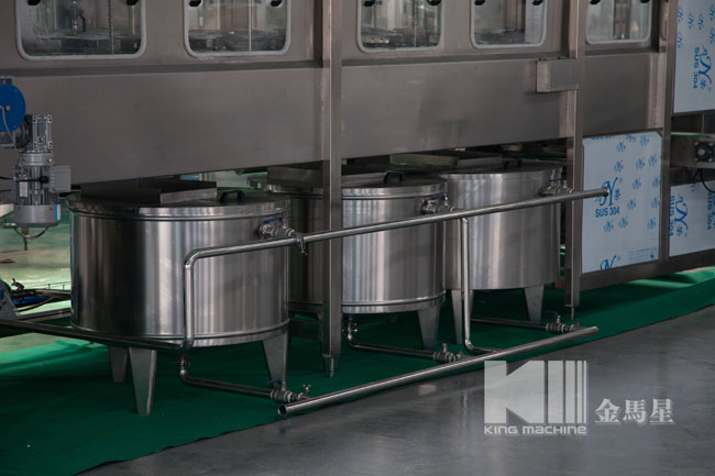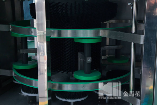 本設備集合了消毒、沖洗、灌裝和壓蓋,合四為一,能夠實現全自動桶裝水旋蓋。沖瓶機使用多種沖品液和消毒液,以保證獲得沖瓶和殺菌效果。消毒液可以循環使用,節省消耗。