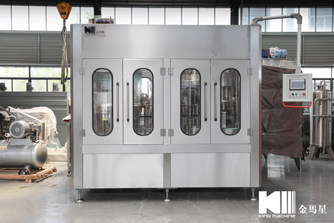 飲用水灌裝機(jī)集沖洗、灌裝、旋蓋于一體,全過程自動(dòng)化運(yùn)行,主要適用礦泉水、純凈水等不含氣飲料的沖瓶、灌裝、封口連續(xù)作業(yè)。本機(jī)大部分電器系統(tǒng)零件均采用國外優(yōu)良產(chǎn)品,所有與液料接觸的地方均采用優(yōu)質(zhì)的不銹鋼材料制作,主關(guān)鍵部件采用數(shù)控機(jī)床精密加工, 整機(jī)光電檢測各部件的運(yùn)行狀況,無瓶不灌裝,無瓶不送蓋,自動(dòng)化程度高,操作簡易,具有耐磨、穩(wěn)定、故障率低等特點(diǎn),產(chǎn)品質(zhì)量處于行業(yè)前列,是新老飲料投資者的選擇。