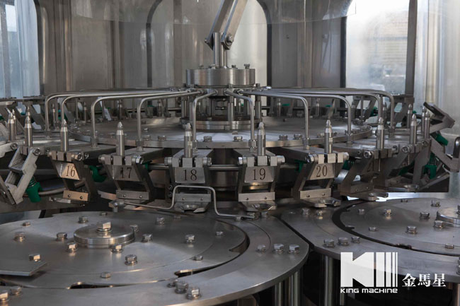 飲用水灌裝機集沖洗、灌裝、旋蓋于一體,全過程自動化運行,主要適用礦泉水、純凈水等不含氣飲料的沖瓶、灌裝、封口連續(xù)作業(yè)。本機大部分電器系統(tǒng)零件均采用國外優(yōu)良產(chǎn)品,所有與液料接觸的地方均采用優(yōu)質(zhì)的不銹鋼材料制作,主關(guān)鍵部件采用數(shù)控機床精密加工, 整機光電檢測各部件的運行狀況,無瓶不灌裝,無瓶不送蓋,自動化程度高,操作簡易,具有耐磨、穩(wěn)定、故障率低等特點,產(chǎn)品質(zhì)量處于行業(yè)前列,是新老飲料投資者的選擇。