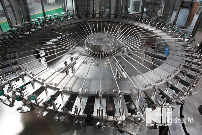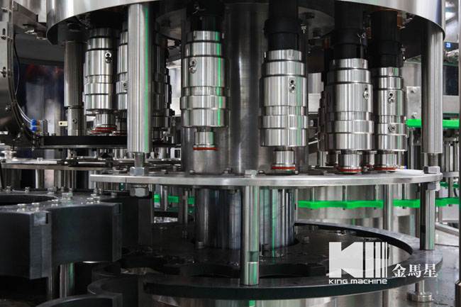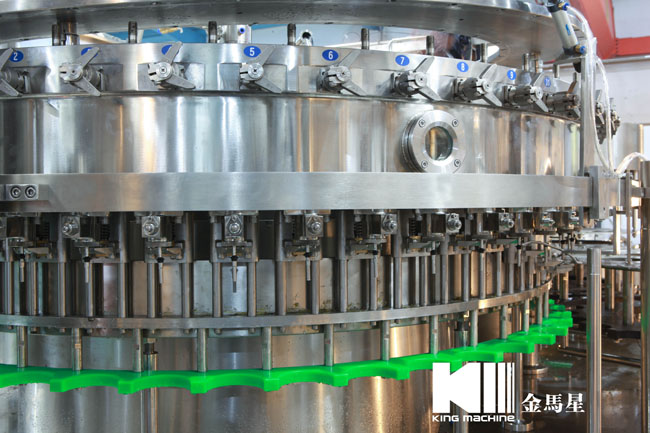 飲用水灌裝機(jī)集沖洗、灌裝、旋蓋于一體,全過(guò)程自動(dòng)化運(yùn)行,主要適用礦泉水、純凈水等不含氣飲料的沖瓶、灌裝、封口連續(xù)作業(yè)。本機(jī)大部分電器系統(tǒng)零件均采用國(guó)外優(yōu)良產(chǎn)品,所有與液料接觸的地方均采用優(yōu)質(zhì)的不銹鋼材料制作,主關(guān)鍵部件采用數(shù)控機(jī)床精密加工, 整機(jī)光電檢測(cè)各部件的運(yùn)行狀況,無(wú)瓶不灌裝,無(wú)瓶不送蓋,自動(dòng)化程度高,操作簡(jiǎn)易,具有耐磨、穩(wěn)定、故障率低等特點(diǎn),產(chǎn)品質(zhì)量處于行業(yè)前列,是新老飲料投資者的選擇。