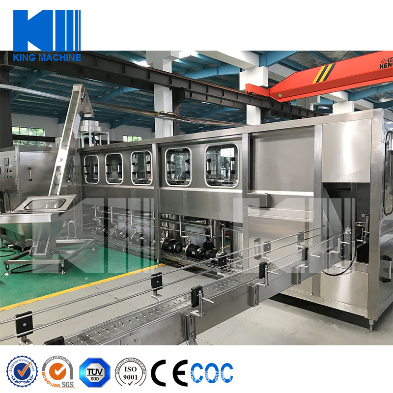 本灌裝生產線專用于3-5加侖桶裝水的灌裝,型號包括了QGF-100,QGF-240,QGF-300,QGF-450,QGF-600,QGF-900,QGF-1200。合消毒、沖洗、灌裝、壓蓋四為一體。沖洗機采用了多種洗液以及消毒液對瓶子進行清洗以及消毒,消毒液能夠循環使用。瓶蓋會在清洗和消毒后運至旋蓋機自動進行旋蓋。本產品功能齊全,涵蓋了清洗、消毒、灌裝、旋蓋、計數等功能,高度自動化,實為飲料生產廠家理想的優選設備。