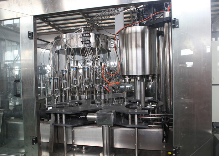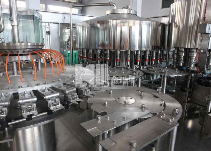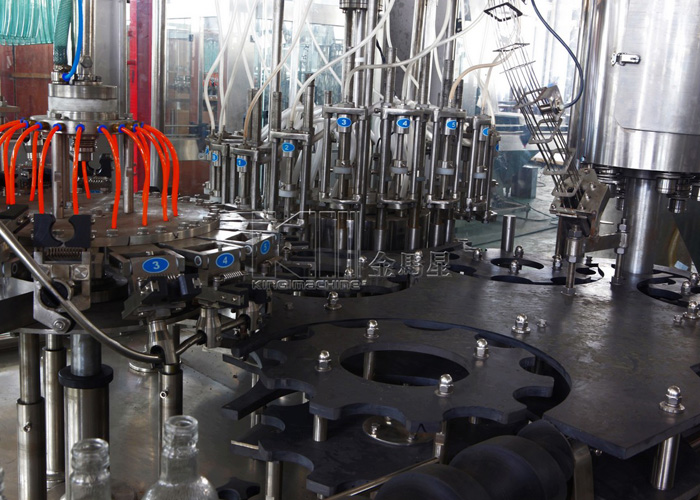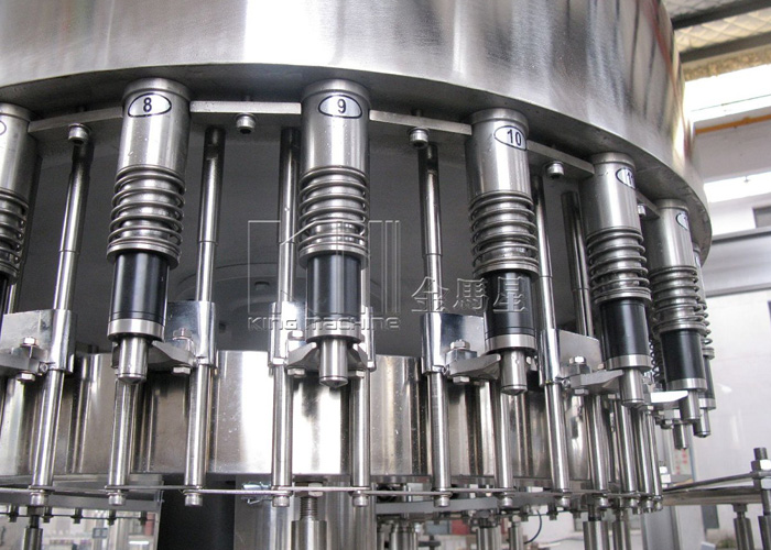 本灌裝生產(chǎn)線專用于3-5加侖桶裝水的灌裝,型號(hào)包括了QGF-100,QGF-240,QGF-300,QGF-450,QGF-600,QGF-900,QGF-1200。合消毒、沖洗、灌裝、壓蓋四為一體。沖洗機(jī)采用了多種洗液以及消毒液對(duì)瓶子進(jìn)行清洗以及消毒,消毒液能夠循環(huán)使用。瓶蓋會(huì)在清洗和消毒后運(yùn)至旋蓋機(jī)自動(dòng)進(jìn)行旋蓋。本產(chǎn)品功能齊全,涵蓋了清洗、消毒、灌裝、旋蓋、計(jì)數(shù)等功能,高度自動(dòng)化,實(shí)為飲料生產(chǎn)廠家理想的優(yōu)選設(shè)備。