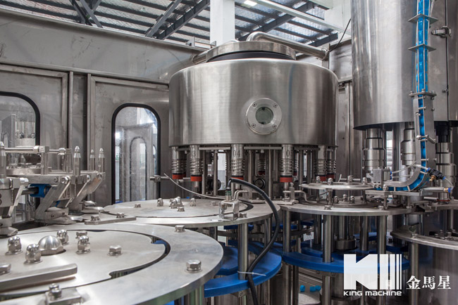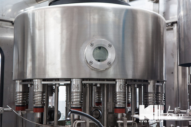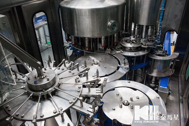 飲用水灌裝機集沖洗、灌裝、旋蓋于一體,全過程自動化運行,主要適用礦泉水、純凈水等不含氣飲料的沖瓶、灌裝、封口連續(xù)作業(yè)。本機大部分電器系統(tǒng)零件均采用國外優(yōu)良產(chǎn)品,所有與液料接觸的地方均采用優(yōu)質(zhì)的不銹鋼材料制作,主關(guān)鍵部件采用數(shù)控機床精密加工, 整機光電檢測各部件的運行狀況,無瓶不灌裝,無瓶不送蓋,自動化程度高,操作簡易,具有耐磨、穩(wěn)定、故障率低等特點,產(chǎn)品質(zhì)量處于行業(yè)前列,是新老飲料投資者的選擇。