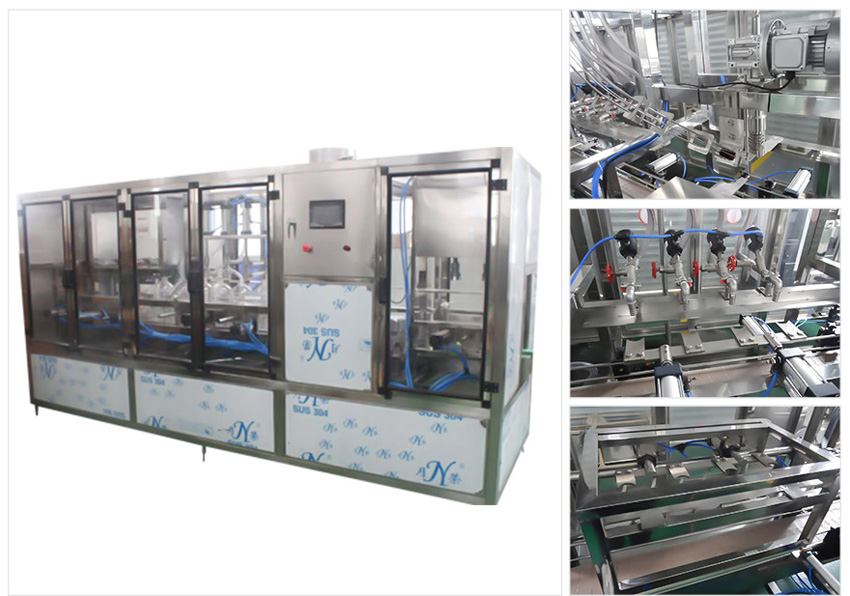 本設備適用于3L/5L/7L/10L的瓶子,進行沖洗灌裝和壓蓋。結構簡單,容易操作。