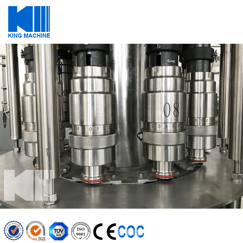 果汁灌裝機同時適用于果汁、茶飲料、功能飲料及果味奶飲料的灌裝。在溫度控制器的幫助下,該機器能夠進行80-95度高溫熱灌裝。本設備采用瓶頸懸掛技術,適用于各種瓶型,跟換瓶型只需調節傳送鏈的高度及出瓶玻璃即可,方便快捷。全機PLC控制變頻調速,自動化程度高,自動控制進液,液位控制準確,無滴漏。與物料接觸部分均為食品級304優質不銹鋼。是飲料廠家的優選產品。